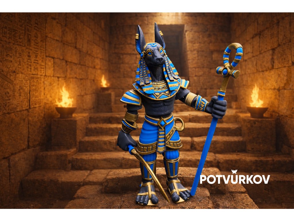 Figurka je navíc dodávána včetně srpu a hole (žezla), takže dostanete kompletní podobu Anubise přesně jako na fotografii.