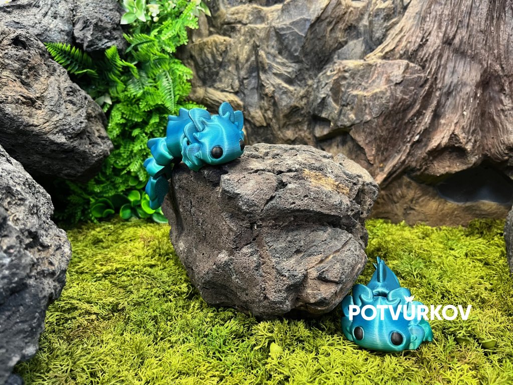 Nabízíme potvůrky, které sami vyrábíme na 3D tiskárnách a k nimž máme licenci. Tiskneme ve vysokém rozlišení z eko materiálu PLA známé také jako Kyselina polymléčná a to je produkt z kukuřičného či bramborového škrobu nebo cukrové třtiny, což jej činí ekologičtějším ve srovnání s tradičními plasty. PLA je jedním z nejběžněji používaných filamentů pro 3D tisk a je oblíbený pro svou snadnou použitelnost, biologickou odbouratelnost a relativně nízkou teplotu tavení (kolem 180–220 °C).