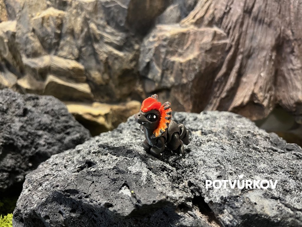 Kdysi dávno hlídali Dilophosauři svou džungli a uměli zastrašit soupeře roztaženým límcem. Tento malý drobek se ale ničeho nebojí – místo syčení se staví na zadní a předvádí, jak umí panáčkovat. Je zkrátka hravý kamarád, který vnese do sbírky pořádnou dávku roztomilosti.