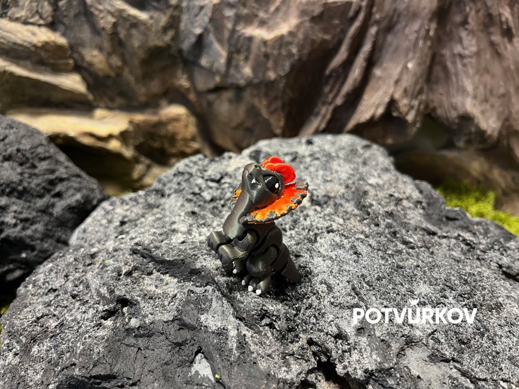 Poznejte roztomilého mini Dilophosaura! Tento drobný dinosauřík s barevným límcem umí nejen zaujmout svým vzhledem, ale také „panáčkovat“ – a tím si okamžitě získá každého.