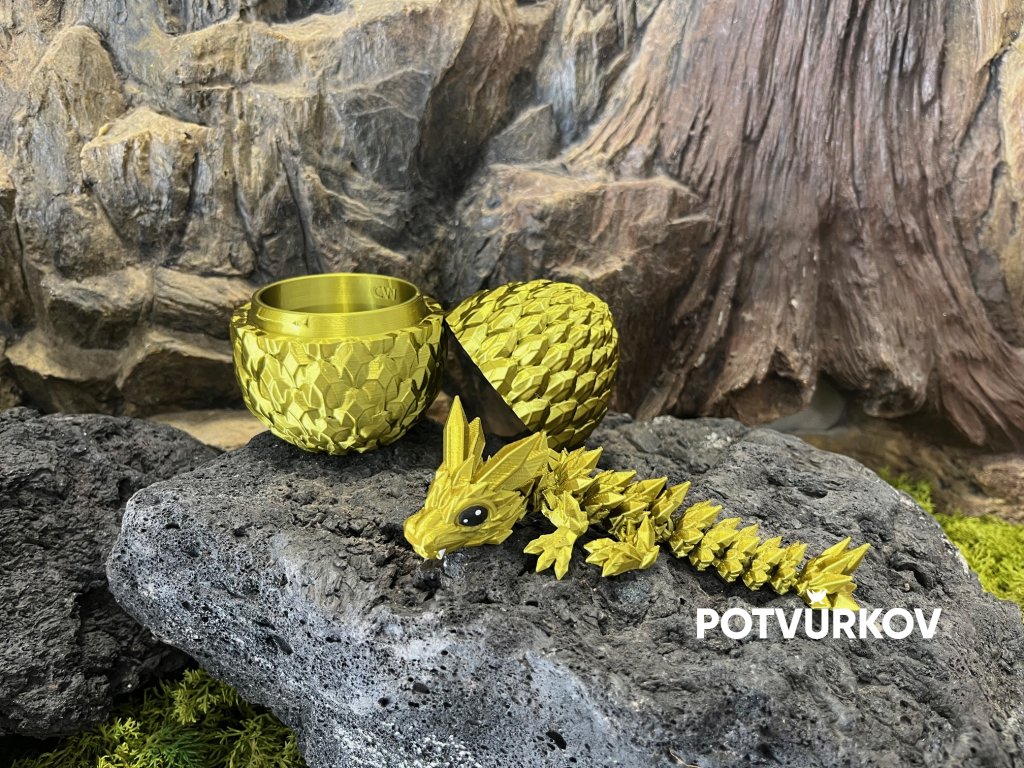 Poznejte veselého dráčka jménem Kiwík! Ukrytý ve svém vejci čeká, až se vyklube do nového domova. Jeho šupiny hrají odstíny šťavnatě zelené barvy a připomínají sladké ovoce kiwi. Vyrobený na české 3D tiskárně Prusa a ručně domalovaný, je každý Kiwík jedinečný originál s vlastní duší.
