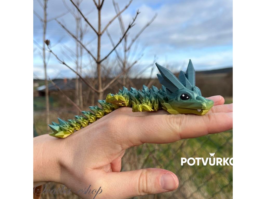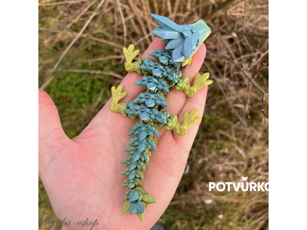 Krystalkový dráček zeleno modrý mládě délka 17,5 cm 3D tisk