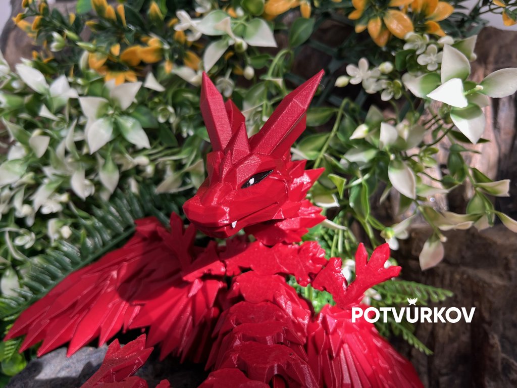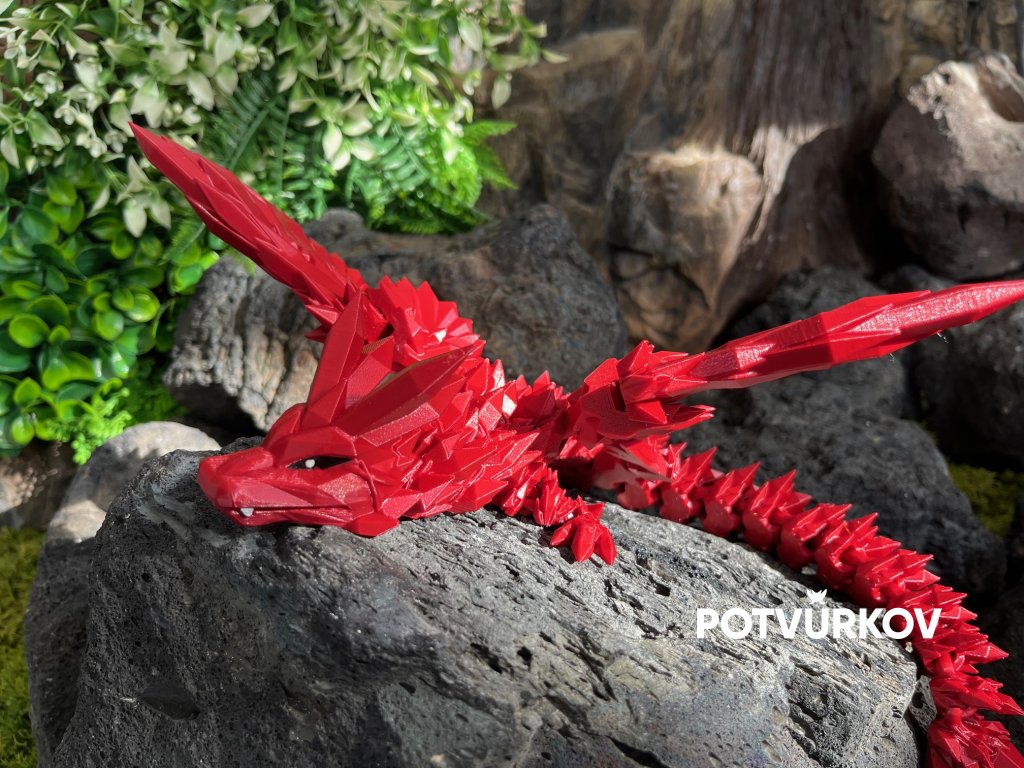 Krystalový drak bordový s křídly 46 cm 3D tisk