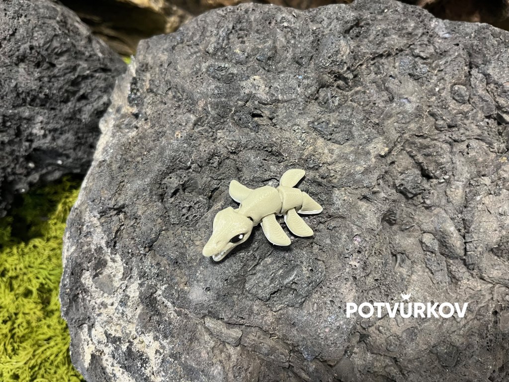 Seznamte se s naším mini Mosasaurem – pravěkým vládcem moří v roztomilém provedení! I když byl jeho pradědeček obávaným predátorem, tenhle drobeček je spíš přátelský společník, který vám vykouzlí úsměv.