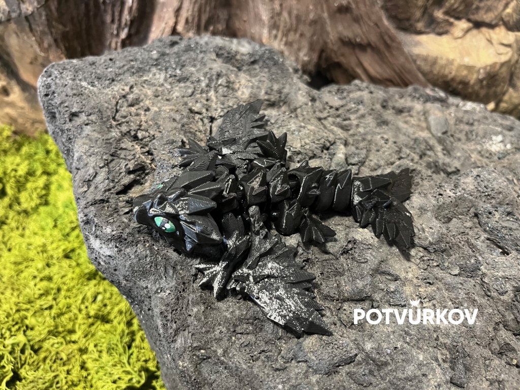 Seznamte se s černým dráčkem jménem Zelenoočko – kouzelnou potvůrkou z 3D tiskárny Prusa, má křídla, bystrý pohled a velké srdce. Jeho zelené oči září jako smaragdy a ukrývají spoustu tajemství.
