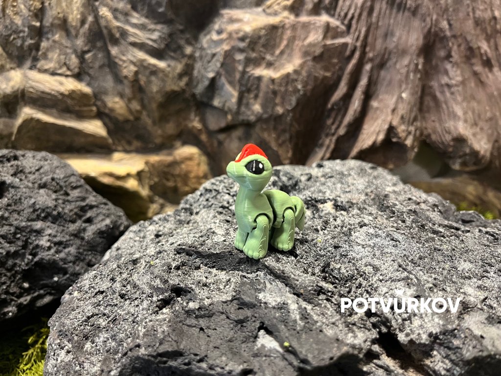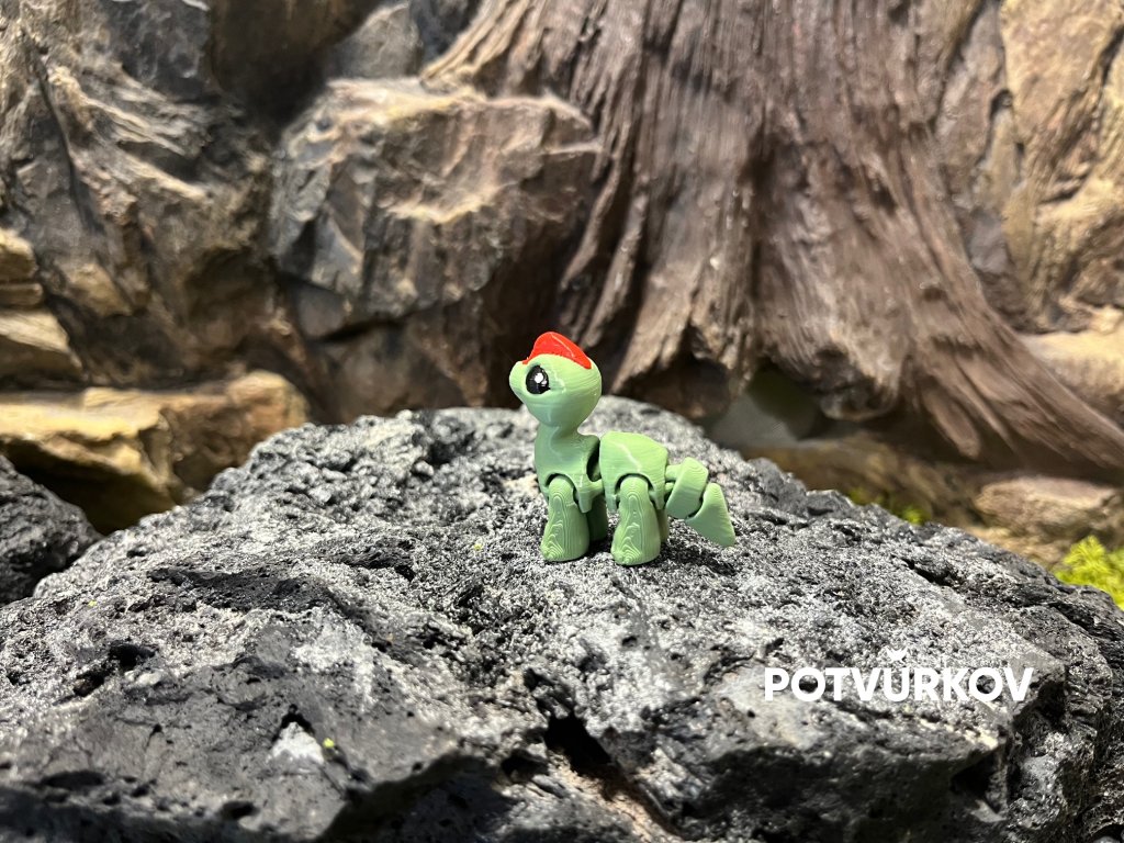 Pachycephalosauři kdysi putovali v tlupách a bojovali mezi sebou čelními nárazy. Náš malý Pachycephalosaurus má ale úplně jinou povahu – rád objevuje, schovává se mezi kameny a s hlavou hrdě vztyčenou hledí na svět. Je odvážný, roztomilý a připravený stát se vaším novým kamarádem.