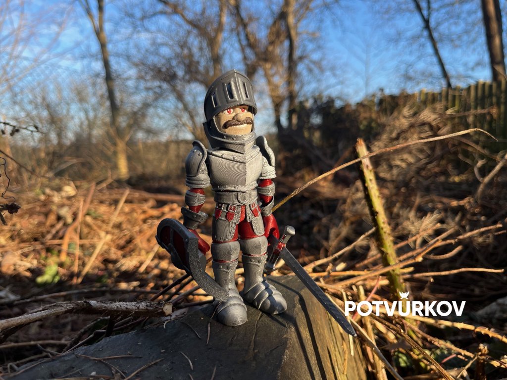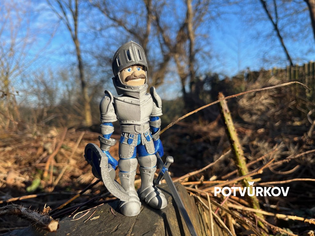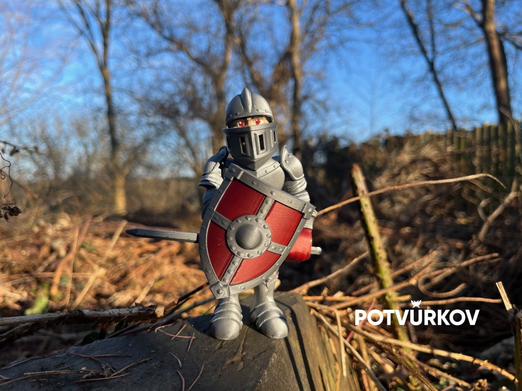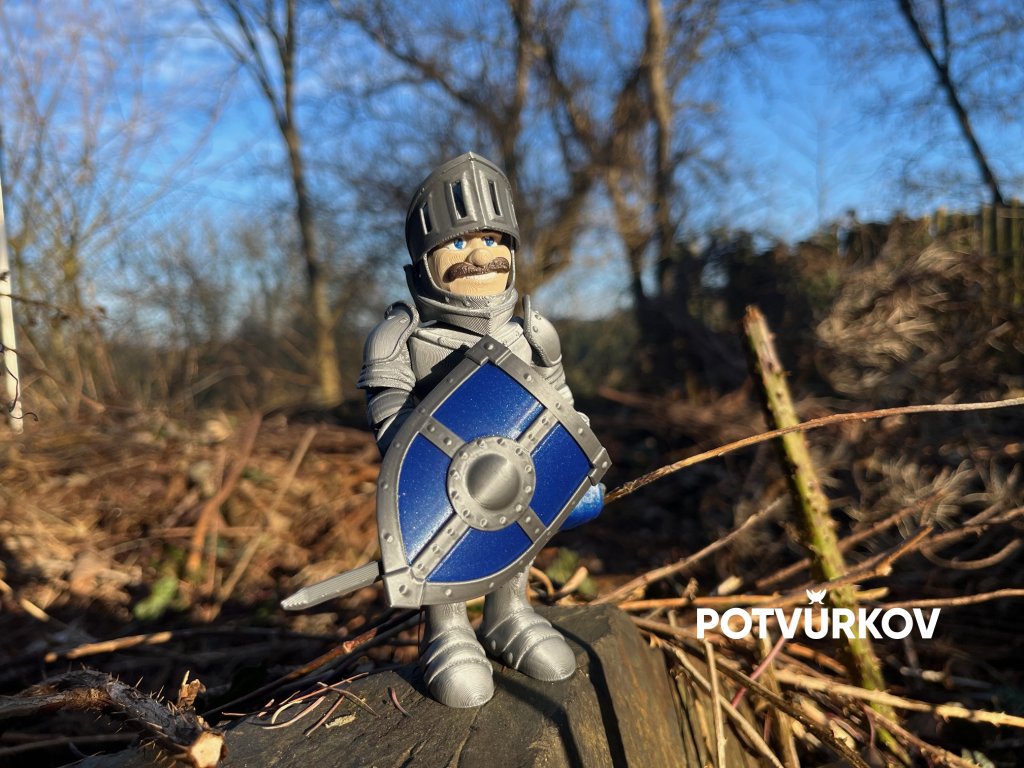 Rytíř ve zbroji 14 cm – 3D tištěný bojovník se štítem a mečem