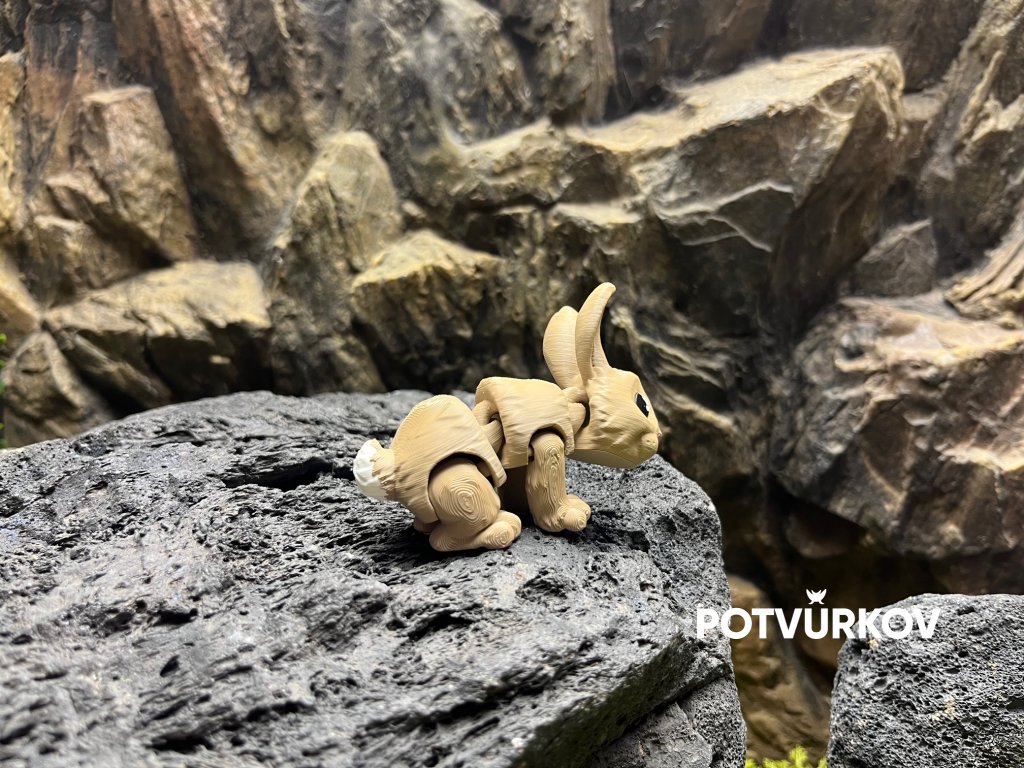 Krásný zajíček světle hnědé barvy s bílým ocáskem.